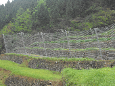 1、挂边坡防护网植草;2、挖截水沟;3、做支撑渗沟;4、埋设软性渗水管。