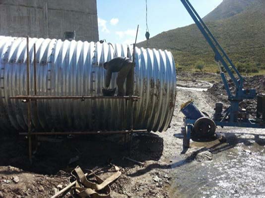在某些运输不太方便的地方可以直接在涵锕长度方向进行钢波纹涵管的拼装。