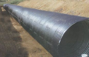 3、钢波纹涵施工时,采用分段施工的办法,预先在原拱涵基底用角钢并排两根,长度依据涵长确定。作钢质涵管推进时的滑轨,波纹涵管管径依据工程需求可有分歧的规格,束装管管径为0.5m--2.5m;每节管长度3米左右。采用内(外)法兰螺栓衔接。拼装涵管管管径为3m--8m。每个圆周偏向有4---15块板构成,板与板搭接高强螺栓紧固。