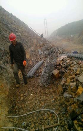 ③灌浆完成28小时内,不得敲击和碰撞边坡防护网锚杆。